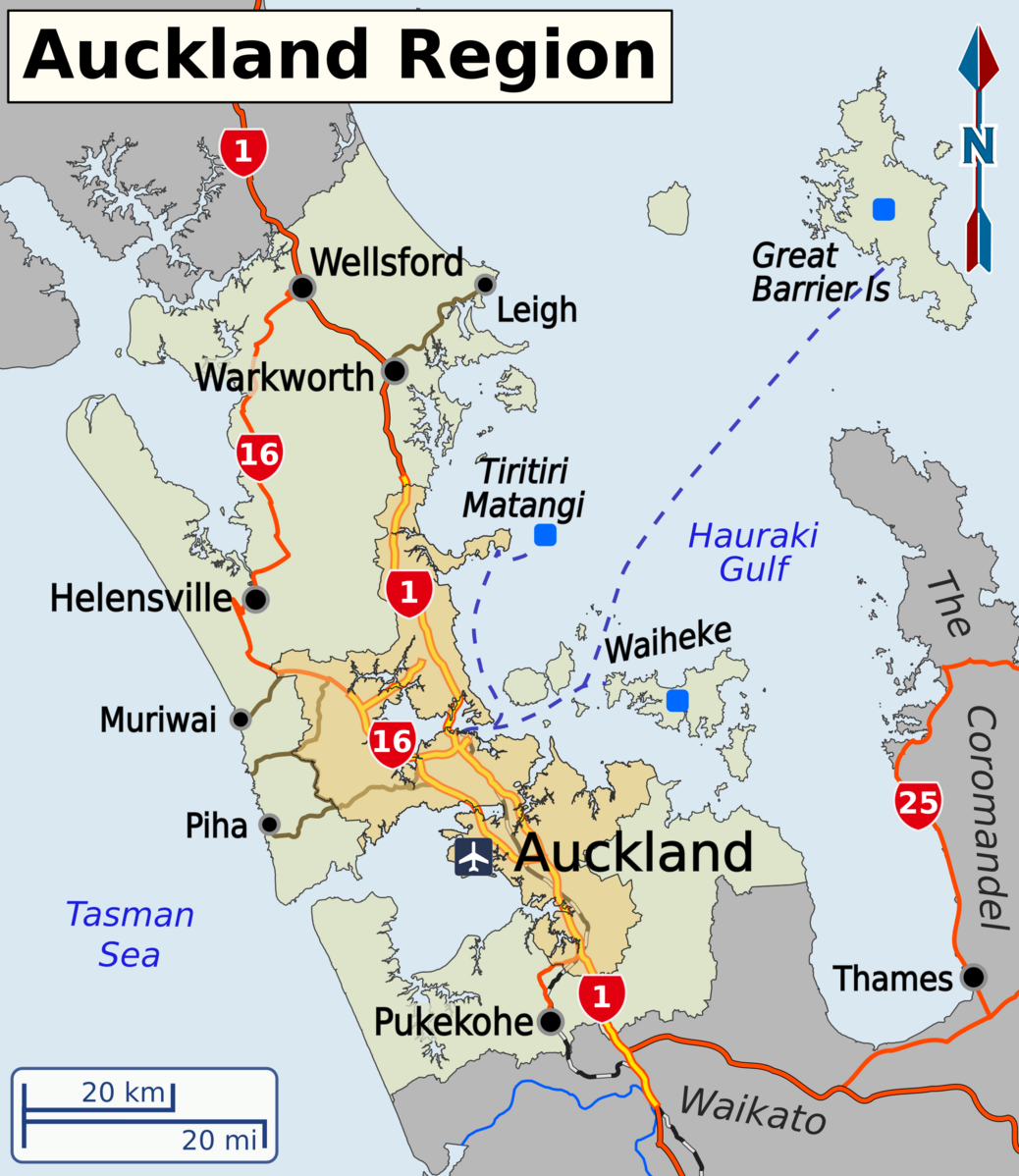 Suburbs in the Greater Auckland Region (but outside of the red boundary shown on the previous map) can be covered for an additional fee of NZ$250.